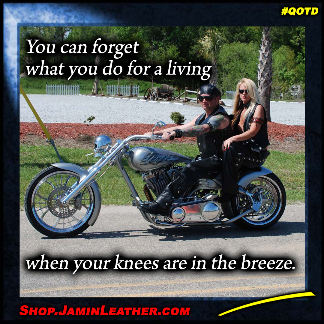 You can forget what you do for a living when your knees are in the breeze. For the best deals on leather apparel, visit our new website shop.jaminleather.com!