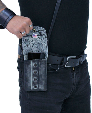 Antiqued Leather Clip-On Case w/Removable Strap USA #PKK18093GY