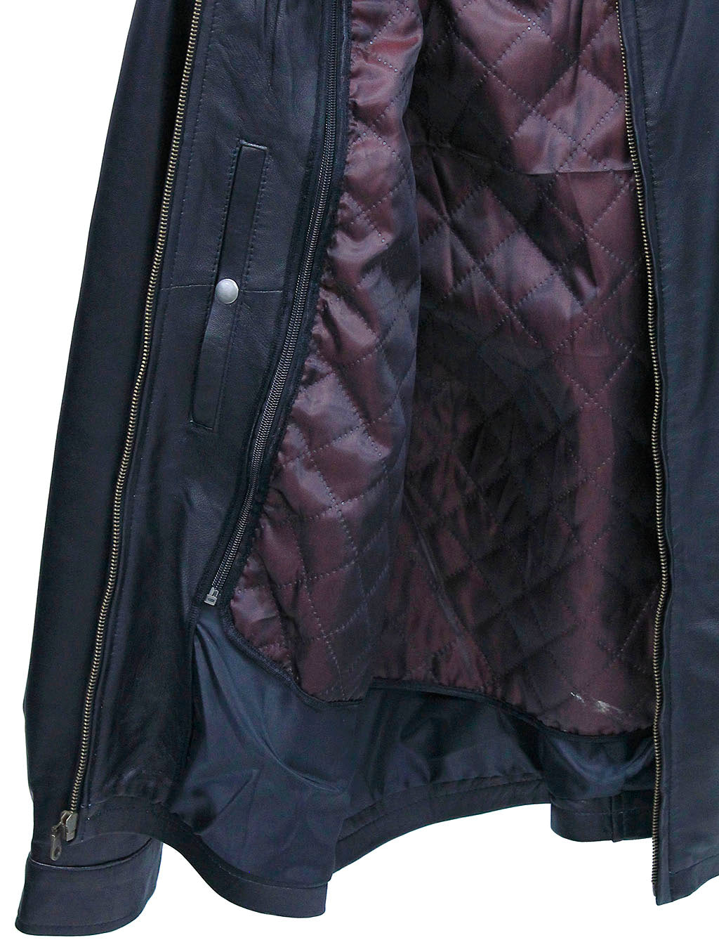 rich burgundy satin quilted zip out lining