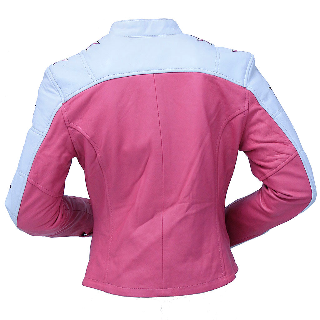 Pink Star Cafe' Racer Motorcycle Leather Jacket #L190ZUSTAR