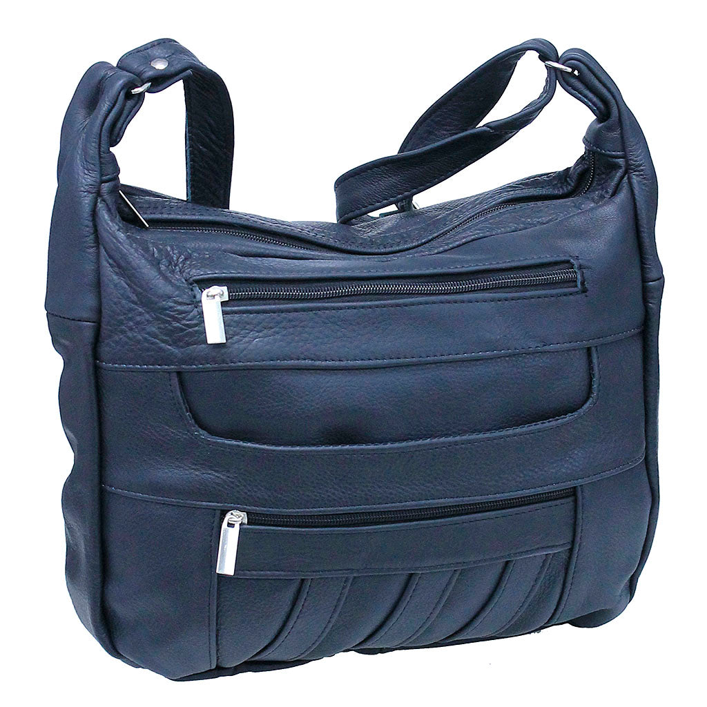 Extra durable black leather purse with long adjustable leather shoulder strap. A long lasting genuine leather purse comes with a full width top zipper compartment, inside zipper compartment, two front zipper pockets, and one wide easy access pocket on front. This long lasting cowhide real leather purse is a perfect size for everyday use. [2#]