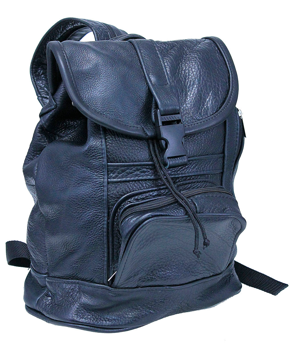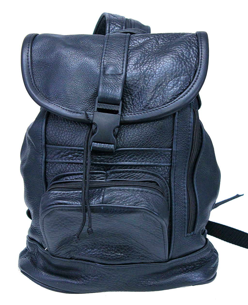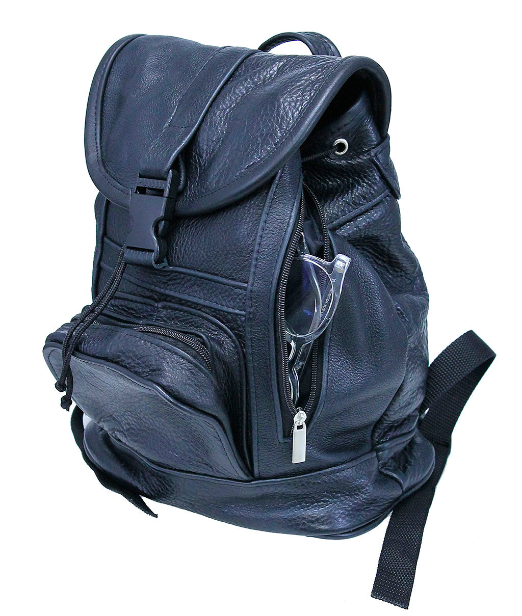 Medium size black, long lasting heavy cowhide leather mini backpack, handbag or purse with sling shoulder strap that separates so it can be worn off both shoulders. Comes with large zip pouch on front, large side entry zipper, inside zip pocket and drawstring under the flap. [3#]