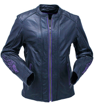 Purple Winged Heart Leather Vented Motorcycle Jacket #L695417VGPU