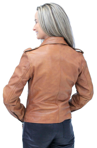 Arizona brown women s motorcycle jacket in ultra-soft vintage lambskin