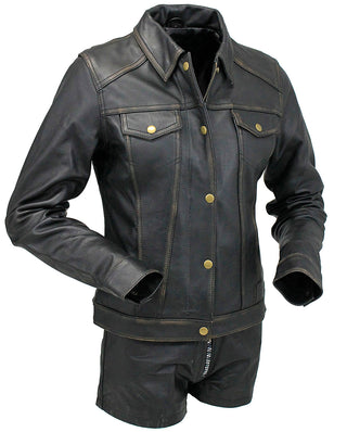Frontier Black Leather Shirt for Women #LS43K (XS-M)