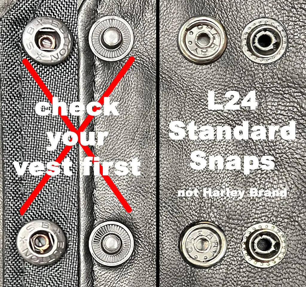 Silver or black snaps and chrome rings vest extenders sold in set of 4. These vest extenders with rings will give you an extra 3 inches of room for comfort, ventilation or just because you outgrew your favorite vest. A 4 pc. set of quality bike vest extenders that is ideal for your club vest so you can wear over your jacket. Made with heavy cowhide leather snap tabs and nickel plated hardware. Fits all standard vest snaps. A Jamin Leather® original. Fits all standard style vest snaps (Line 24). Made in t he USA by Jamin Leather®! [1#]