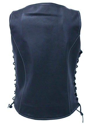 Women's Black Leather Vest with Concealed Pockets #VL2658GK (S-7X)