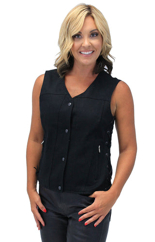 Heavy Denim Women's Side Lace Concealed Pocket Biker Vest #VLC519GLK