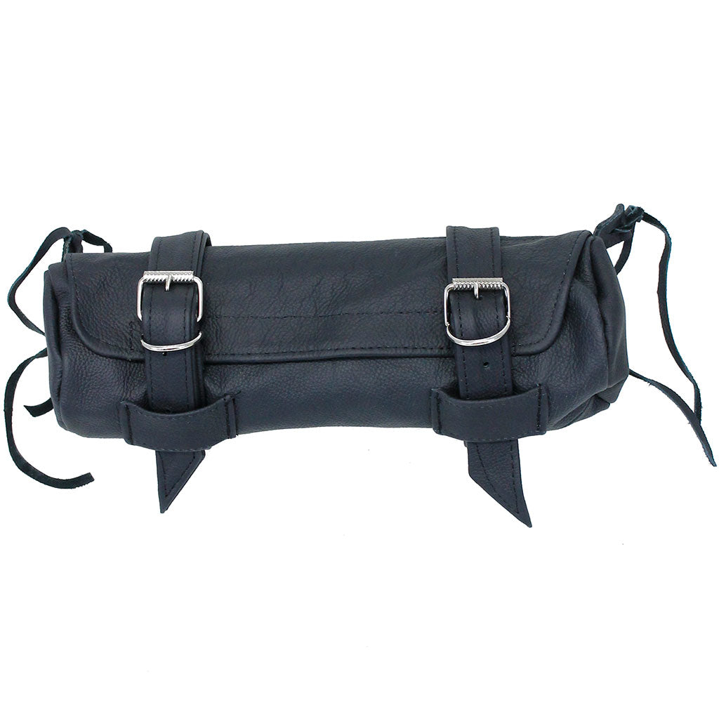 Round Soft Black Leather Motorcycle Tool Pouch #TP716K