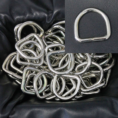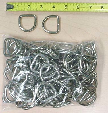 Heavy duty 1 1/8" inside nickel plated D-rings in 100 pc bulk packaging. A welded D-ring for your next craft project or belt. The bulk packaging is for your best deal and available while supplies last.