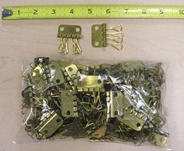 20 pcs of 1 1/4" wide 4 hook durable brass key case hooks. Ideal for your custom key cases in leather or other fabrics. Lightly tarnished brass finish. Special blowout price while supplies last.