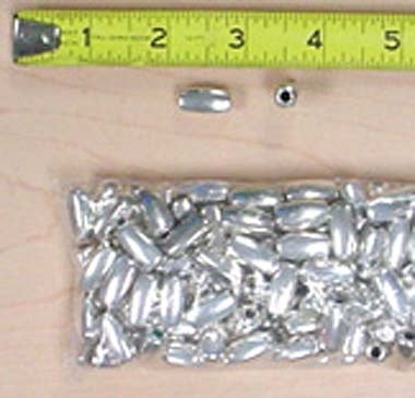 200 pc count of silver box beads for your next craft project with a 1/8 in hole to fit on virtually any rawhide lacing. Ideal to enhance the look of the lace on your fringed vest, jacket or any other apparel or project. [.5#]